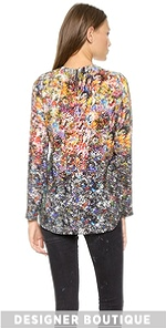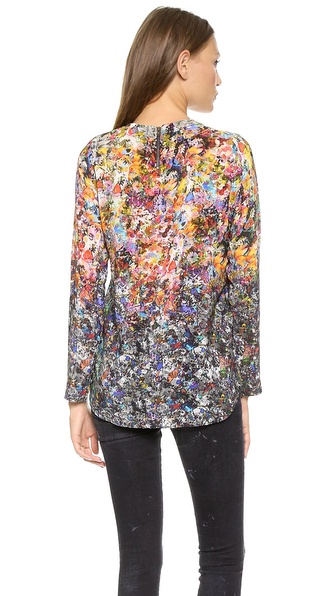 A painterly mix of colors brings a bold statement to this silk Roseanna top. Exposed back zip. Long sleeves. Shirttail hem.