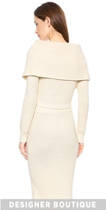 A cropped Zimmermann sweater in a wool blend. A cape detail lends an element of drama. Wide boat neckline. Ribbed edges. Long sleeves.