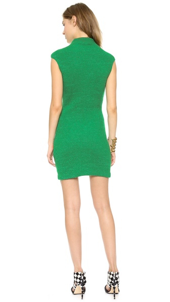 A high neckline lends a mod look to this formfitting DSQUARED2 dress. Brushed threads add soft texture to the marled-knit piece. Cap sleeves. Unlined.