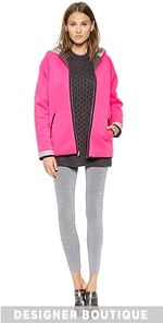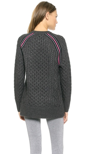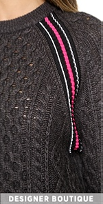 Neon seams bring a pop of color to this T by Alexander Wang sweater styled in traditional aran knit. Ribbed crew neckline and edges. Long raglan sleeves. Unlined.
