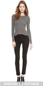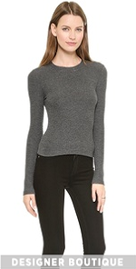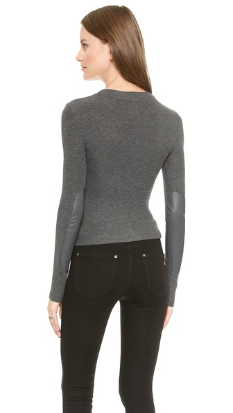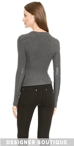 A super-soft ribbed jersey top gets a cool update with soft leather elbow patches. Crew neckline. Long sleeves.