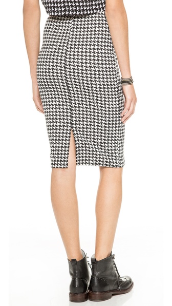 An elegant Glamorous pencil skirt has classic appeal in a bold houndstooth print. A back slit adds movement. Unlined.