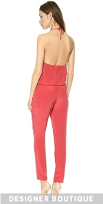 Lightweight silk lends airy elegance to this Rory Beca jumpsuit. A drawstring cinches the loose silhouette and spaghetti straps tie behind the neck. Slant hip pockets. Unlined.