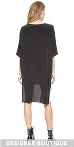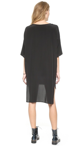 Dropped shoulder seams accentuate the exaggerated drape of a slouchy silk Oak dress. Notched uneven hem. Elbow-length sleeves. Unlined.