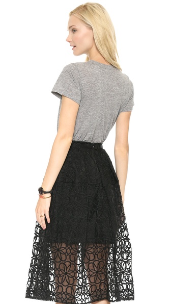 A bold heart adds a graphic element to this A Fine Line tee. Ribbed crew neckline. Short sleeves. Semi-sheer.