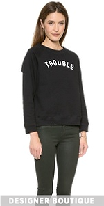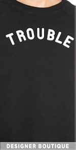 A cozy french terry Sea sweatshirt detailed with crisp 'Trouble' lettering. Topstitching and raglan seams give the relaxed piece vintage charm. Banded edges. Long sleeves.