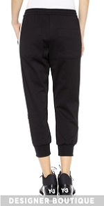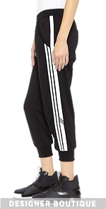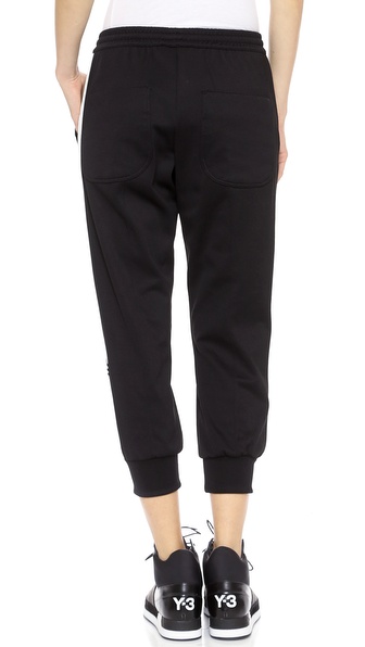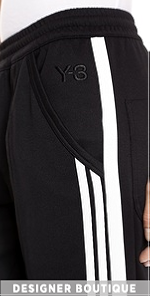 Tapered Y-3 track pants have cool logo stripes along one side. Slant hip pockets and single patch back pocket. Elastic waist. Faux fly.