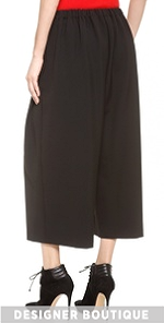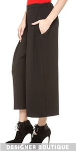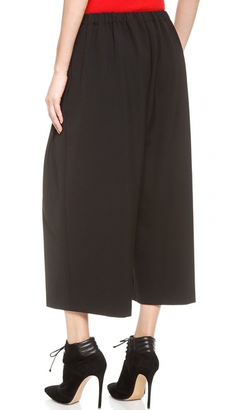 Chic pleated wide-leg trousers with an elegant mod profile. A flattering high waist balances the bold silhouette. Covered elastic cinches the back waist. On-seam hip pockets.