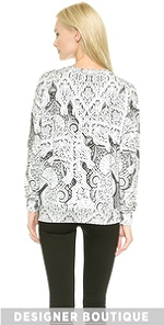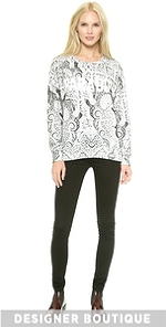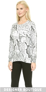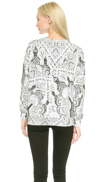 A fractured kaleidoscopic print brings frenetic energy to a french terry ElevenParis sweatshirt. Crisp 'Paradis' lettering cuts a clean line across the front. Banded edges. Crew neckline. Long raglan sleeves.