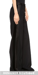 Velvet and satin tuxedo stripes give these wide-leg Jason Wu trousers a cool hit of menswear-inspired style. Button-welt back pockets. Hook-and-eye closure and zip fly.