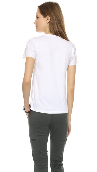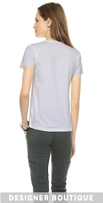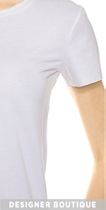 A matte leather-like coating accents the short sleeves of this featherweight jersey tee. Ribbed crew neckline.