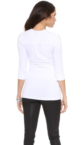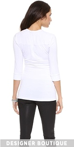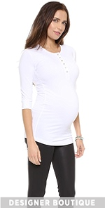 A Rosie Pope maternity henley cut from soft versatile jersey. 3/4 sleeves. Button half-placket.