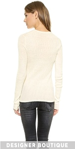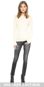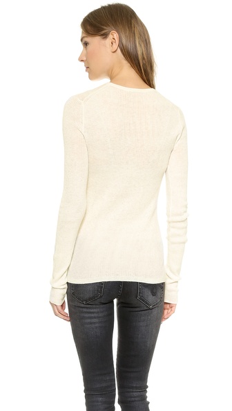 Delicate ribbed knit lends a figure-hugging fit to a lighweight Theory sweater. Crew neckline. Banded edges. Long sleeves.