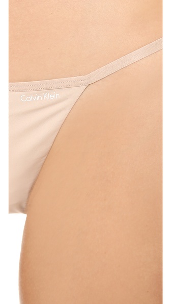 A barely there Calvin Klein Underwear thong accented with logo lettering at the hip.