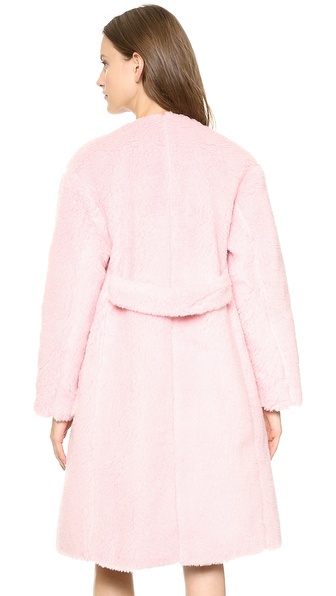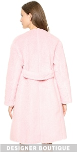 Brushed wool lends plush texture to this cozy sherpa Rochas jacket. Welt and patch pockets lay at the hips and an attached belt accents the back. Open placket. Lined.