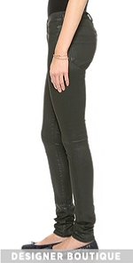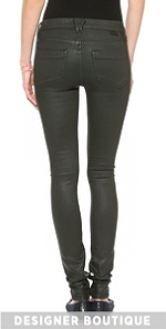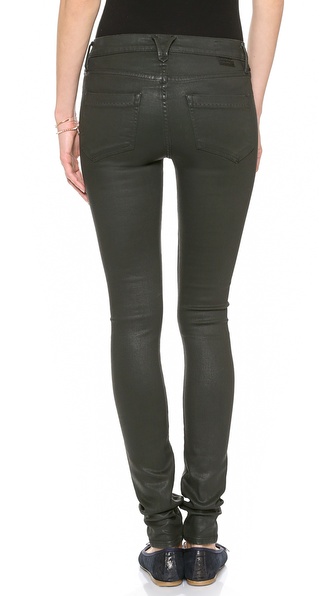 GOLDSIGN skinny jeans cut from coated stretch denim have a sleek dramatic profile. 5-pocket styling. Single button closure and zip fly.