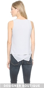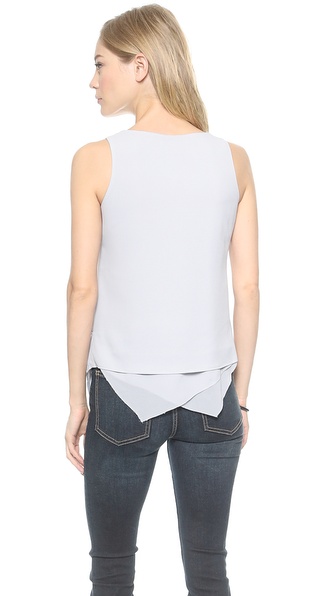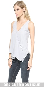 Crossover panels create an alluring deep V on this draped crepe Cooper & Ella top. Pointed asymmetrical panels layer at the hem lending a deconstructed feel. Sleeveless and lined.