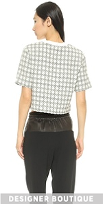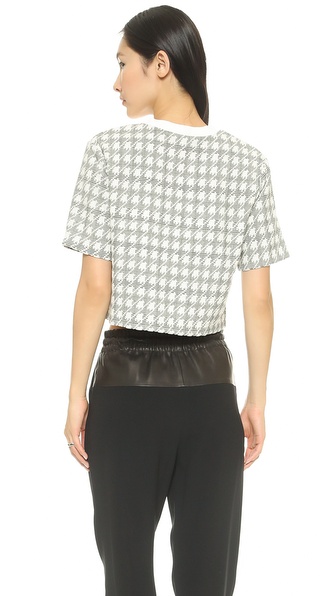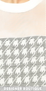 A unique endless rose top with and oversized cropped silhouette. Traditional houndstooth is updated with a sporty sheer-mesh panel. Ribbed crew neckline. Short sleeves.