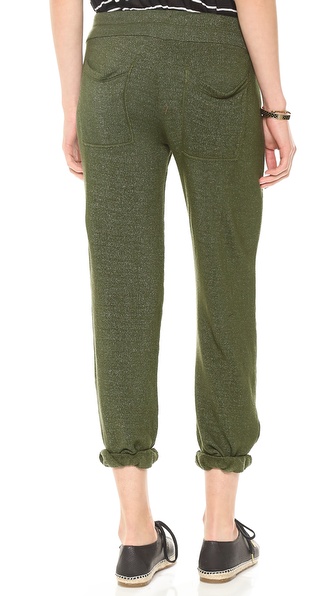 Cozy Splendid sweatpants in french terry. Elastic gathers the cuffs. Patch back pockets. Elastic drawstring waist.