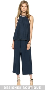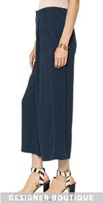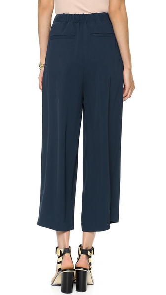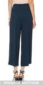 Wide-leg Elizabeth and James pants with deep pleats and a slinky feel. Slant hip pockets and welt back pockets lend cool structure and inset elastic gathers the back. Hook-and-eye closure and zip fly.