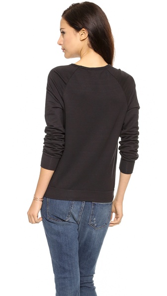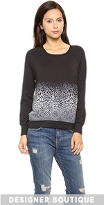 A super-soft fleece pullover by Soft Joie patterned with edgy mixed leopard and snake prints. Relaxed crew neckline. Long raglan sleeves.