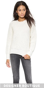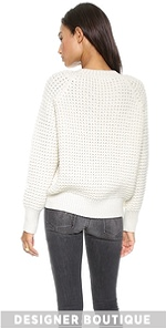 Chunky stitches lend a cozy feel to a tactile Giada Forte sweater. A ribbed panel accents the crew neckline and matching banding trims the edges. Long raglan sleeves.