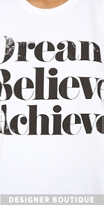 This casual jersey tee makes an optimistic statement with 'Dream Believe Achieve' lettering across the front. Ribbed crew neckline. Short sleeves.