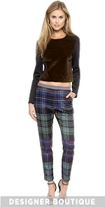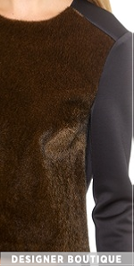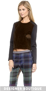 This neoprene Clover Canyon crop top has a contrast faux-fur panel for a playful approach to surf style. Hidden back zip. Long sleeves.