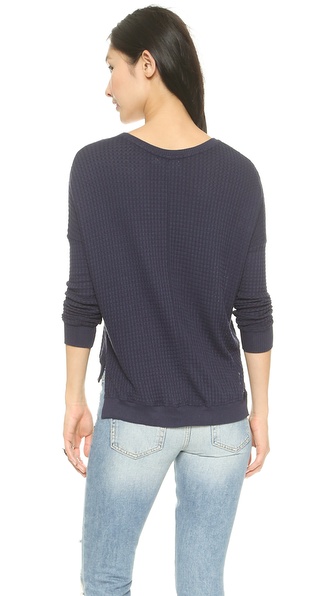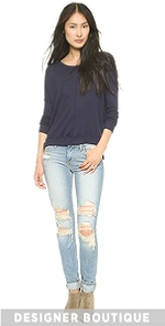This light Velvet sweater gains a relaxed drape from a split asymmetrical hem. Ribbed edges. Long sleeves.