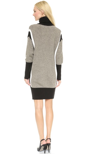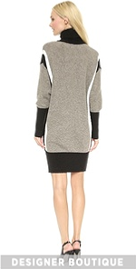 Bold colorblocking brings graphic impact to this Faith Connexion sweater dress. Fine-knit insets play against the brushed material for a cool mix of textures. Fold-over turtleneck. 2 front pockets. 3/4 sleeves. Unlined.
