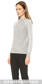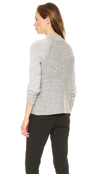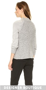 A brushed finish softens the feel of this Vince sweater and a basket-weave knit bodice adds cozy texture. Ribbed edges. Long raglan sleeves.