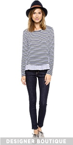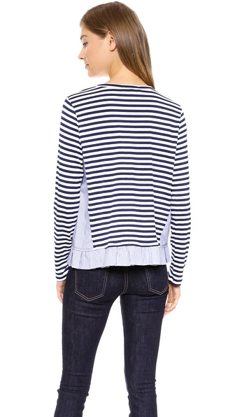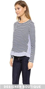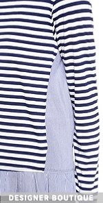 Contrast stripes mix to give a whimsical look to a basic Clu tee. Side panels ease the fit while a ruffled hem adds a feminine finish. Long sleeves.