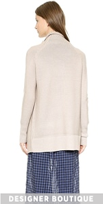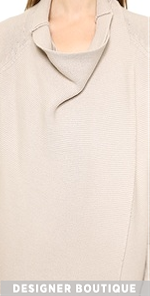 A cozy garter-stitch knit Tess Giberson cardigan with a draped silhouette. Hidden snap closure at relaxed funnel neckline. Ribbed back hem and cuffs. Long sleeves.