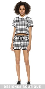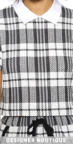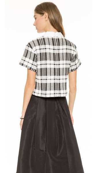 A boxy tweed Sea blouse strikes a modern balance with a cropped silhouette. A fold-over collar details the round neckline. Hidden back zip. Short sleeves. Lined.