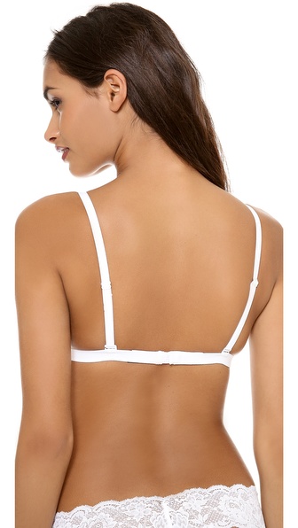 A sexy stretch-lace Cosabella bra with molded padded cups. Hook-and-eye closure and adjustable straps.