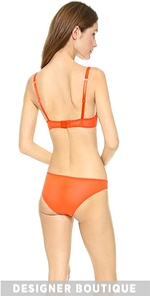 Pleated silk brings a charming element to this sexy lace-trimmed Stella McCartney bra. Molded underwire cups and sheer mesh wings. Adjustable grosgrain straps. Hook-and-eye closures.