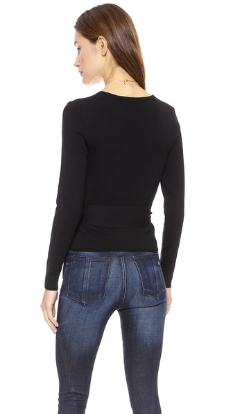 Wraparound ties cinch the fitted silhouette of this cropped DVF cardigan sweater. Crossover V neckline. Long sleeves.