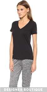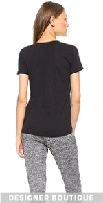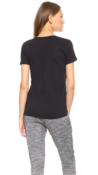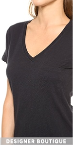 A petite breast pocket lends a feminine feel to a casual slubbed jersey Madewell tee. Banding trims the deep V neckline. Short sleeves.