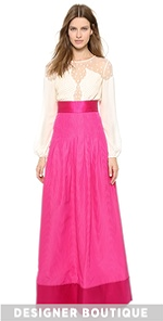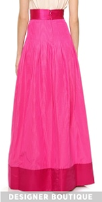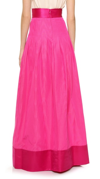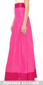 Precise pleats add elegant volume to a moiré faille Temperley London evening skirt. A wide waistband and fitted yoke define the figure and a smooth panel accents the floor-length hem. Hidden back zip. Unlined.