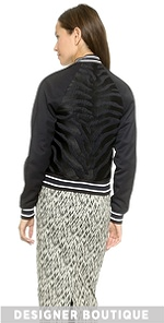 A raised woven pattern lends a unique touch to the back of this crisp Torn by Ronny Kobo bomber jacket. Faux welt pockets frame the zip placket. Ribbed edges and long sleeves. Lined.