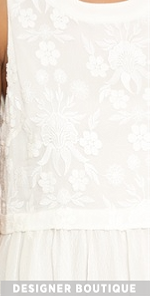 Floral embroidery lends soft texture to an ethereal Elizabeth and James dress styled in airy silk. Ruching flows through the breezy skirt and buttons secure the extended back keyhole. Sleeveless. Lined.