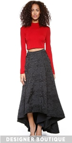 Embroidery accents the floral jacquard pattern on this elegant alice olivia skirt cut with a structured high-low hem for extra drama. On-seam pockets. Exposed back zip. Lined.