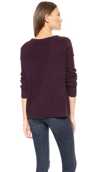 A boxy wool Brochu Walker sweater with unique chevron texture. Inside-out seams add a deconstructed look. Crew neckline. Ribbed edges. Long sleeves.