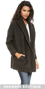 This soft Inhabit jacket gains luxurious appeal from a figure-enveloping profile. Slant front pockets. Cuffed long sleeves with ribbed edges. Unlined.