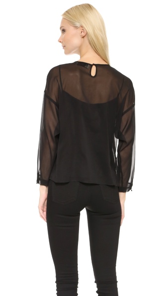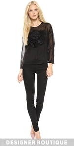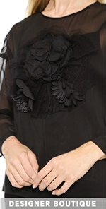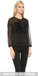 A cluster of appliqué flowers bring natural romance to a loose Leur Logette blouse. Dropped shoulder seams accentuate the loose fit and a faceted button secures the back keyhole. Optional camisole lining.