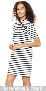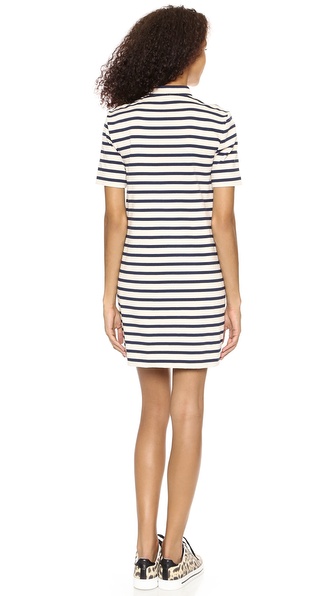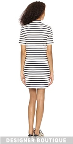 A Marc by Marc Jacobs shift dress in bold two-tone stripes. Piping traces the mandarin collar and angled half-placket which fastens with frog closures. On-seam pockets. Short sleeves. Unlined.