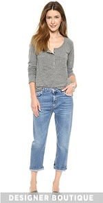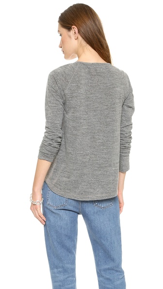 This relaxed Splendid henley has an easy fit. A scoop neckline frames the buttoned half-placket while the raw-edge hem creates a distressed touch. Long sleeves.