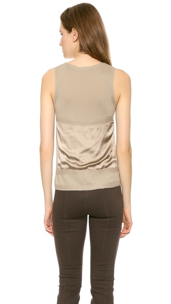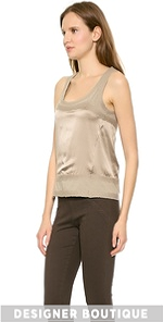 Flocked felted detailing brings an artistic feel to this mixed-texture Donna Karan New York tank. Fluid charmeuse offers a lustrous finish. Scoop neckline.
