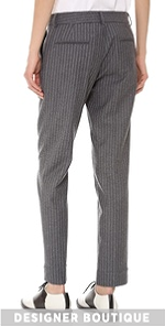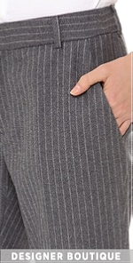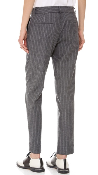 Slim pinstriped Band of Outsiders pants with a polished look. Split cuffs add a casual twist to the sophisticated profile. Slant front pockets and welt back pockets. Extended-tab hook-and-eye closure and zip fly.