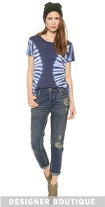 Bold tie-dye adds a free-spirited feel to a classic jersey Raquel Allegra tee. Banded neckline and raw hem. Short sleeves.